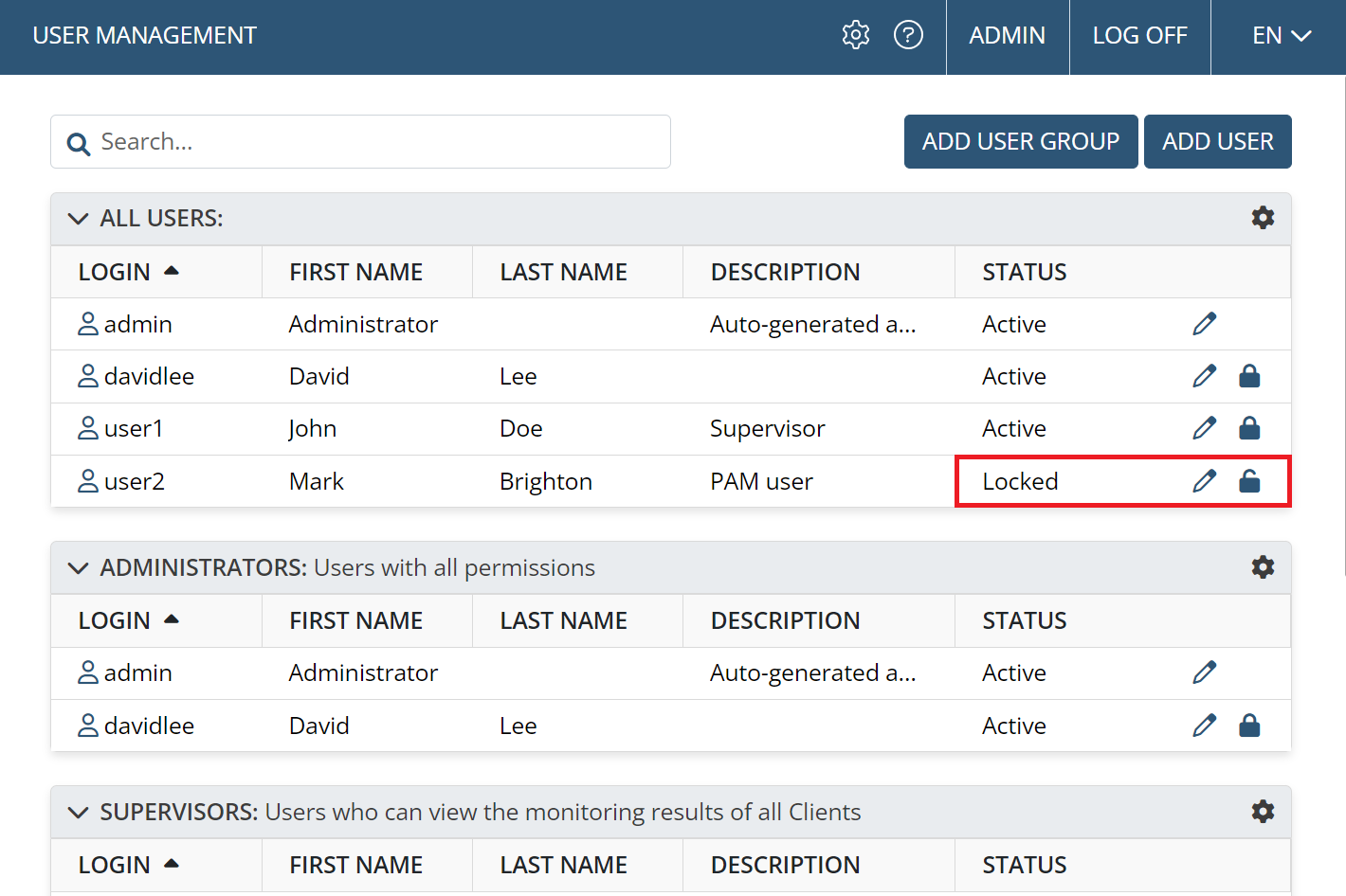 • [Viewing the Audit Log:] The User Name was displayed incorrectly in the Audit Log, after performing a user locking/unlocking operation - fixed.