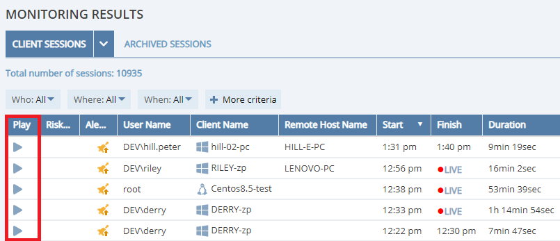 • Remote Host IP Filtering – new capability not to record local sessions added.