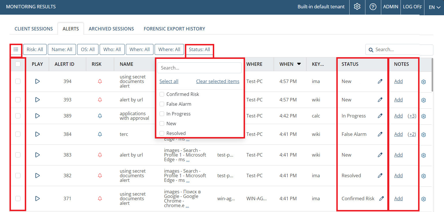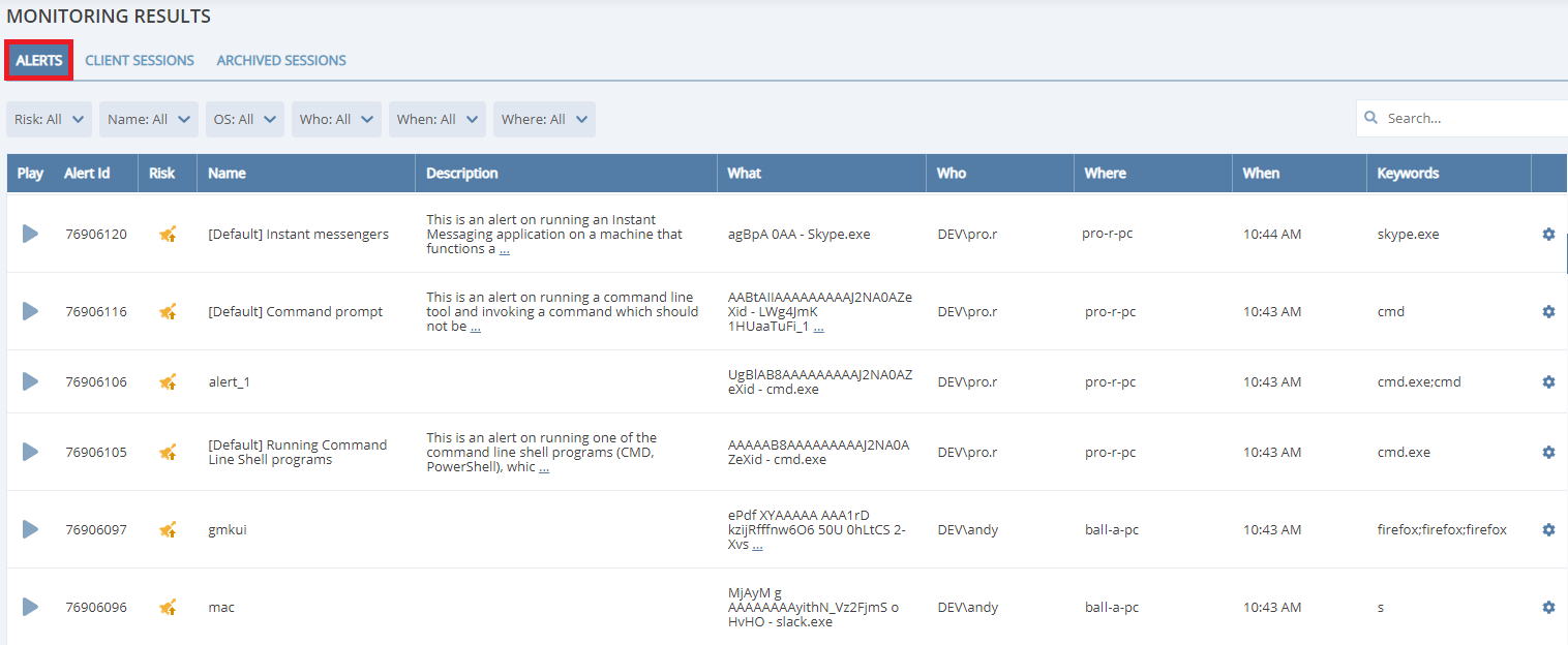 • Alerts (on macOS Clients) – can now be shown to endpoint users (a warning message appears on the Client when an alert is triggered).