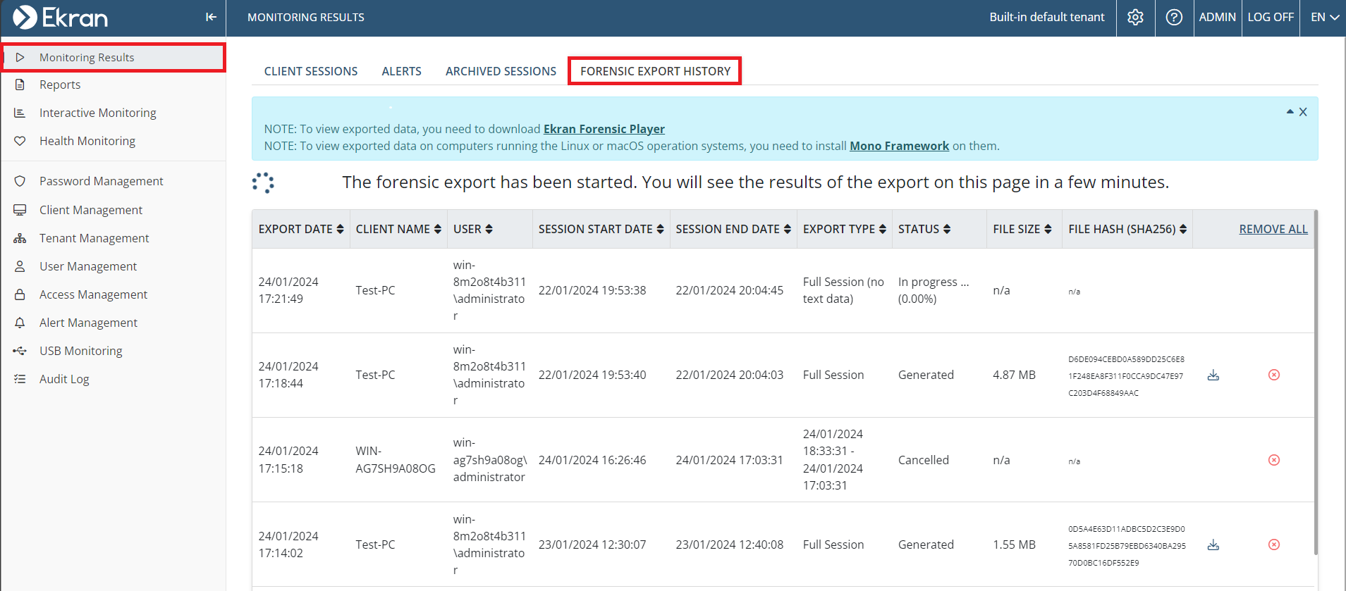 • [Forensic Export:] When playing an exported Client session, the option to show the second screen in the Session Player (when using multiple monitors) was not always available - fixed.
