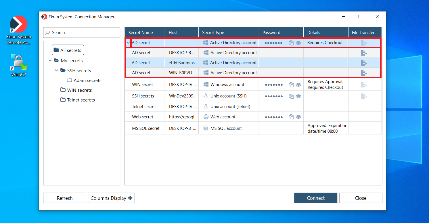 • [Using Secrets:] Active Directory accounts secrets used the wrong FQDN for connection to the allowed machine in certain cases - fixed.