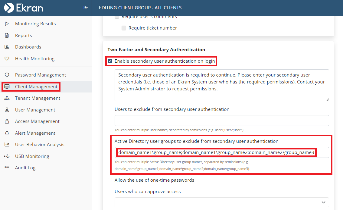 • Secondary user authentication (on Linux Clients) – capability to exclude individual users from checking secondary user authentication added.
