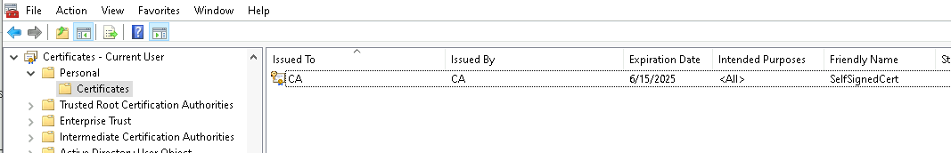 6. Click Certificates - Current User > Personal > Certificates.