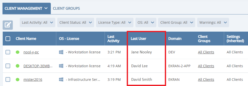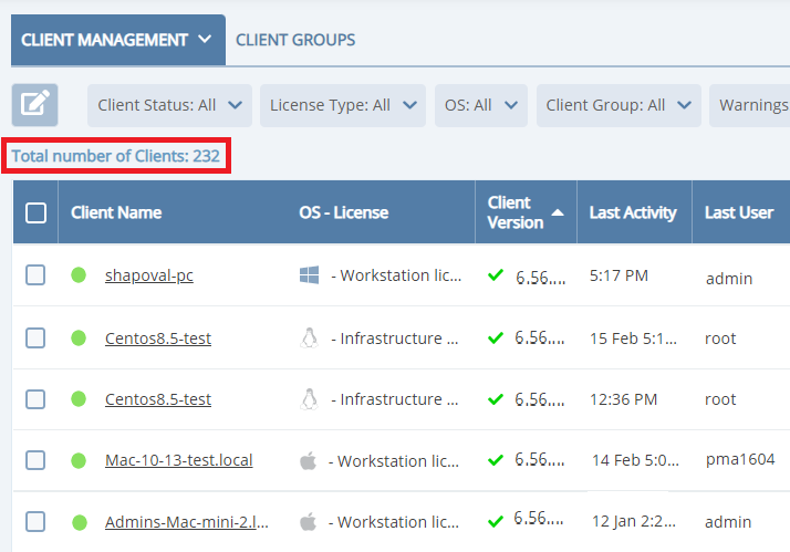 • [Monitoring macOS Clients:] In certain cases, macOS clients were not showing up in the Management Tool after installing them - fixed.