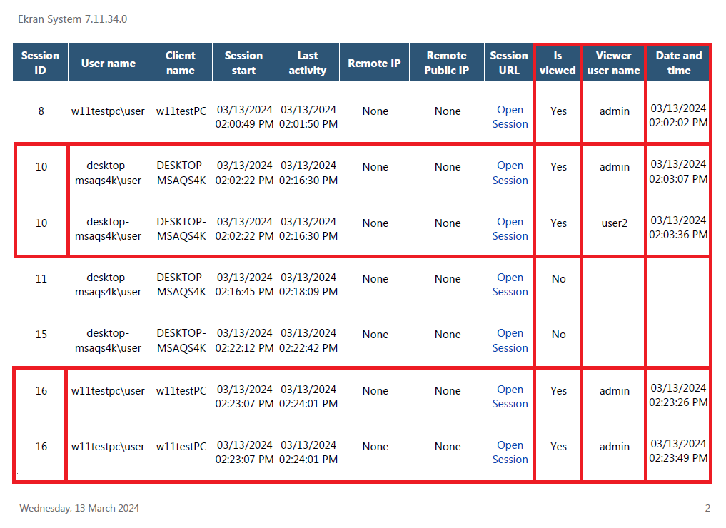 • Remote Host IP Filtering – new capability not to record local sessions added.