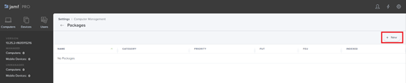 2. On the Packages page that opens, click the New button (in the top right).