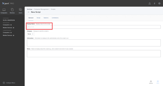 3. On the New Script page that opens, enter a name for the script.