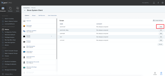 4. Select the Scope tab, then click the Add button on the right and select those computers where you want to install mobileconfig, and then click the Save button (in the bottom right).