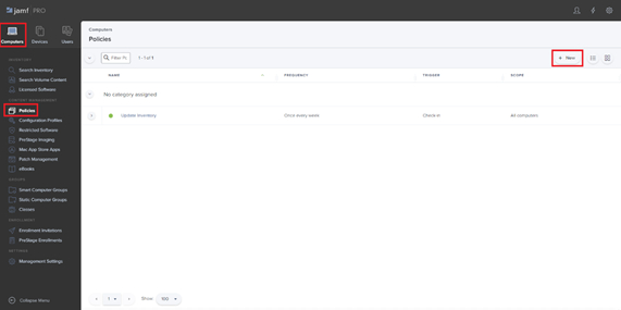 1. In the navigation pane on the left, select Computers > Policies, and then click the New button (in the top right page).
