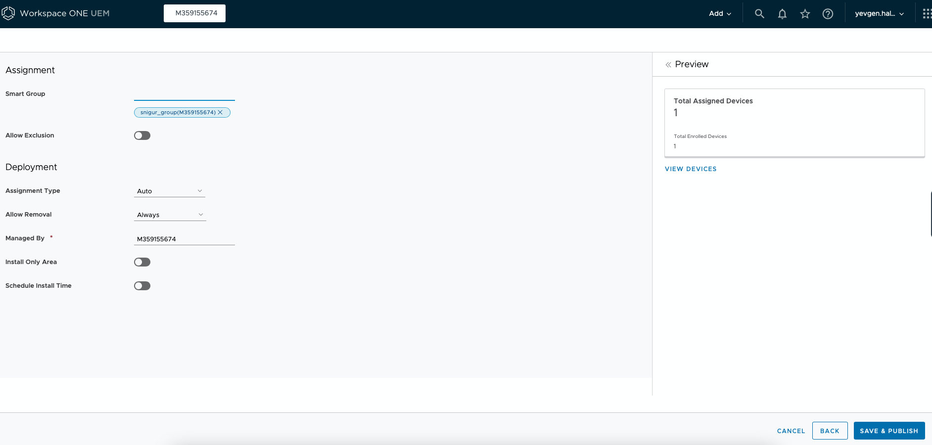 • Select the group of devices where the application is to be installed in the Assignment Groups field.