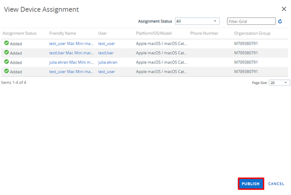 8. Click the Publish button in the bottom right, and the profile will now be installed on the computers in the device group which you defined in the Smart Groups combo box above.