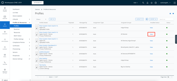 9. To make sure the profile is installed, on the Profiles page, click View next to the profile you have created (on the right).