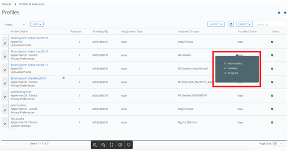 10. In this example, in the pop-up window that opens you can see that the profile is now installed on four computers.