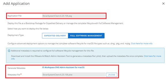 4. Upload the plist file containing the metadata application to VMware Workspace ONE UEM.
