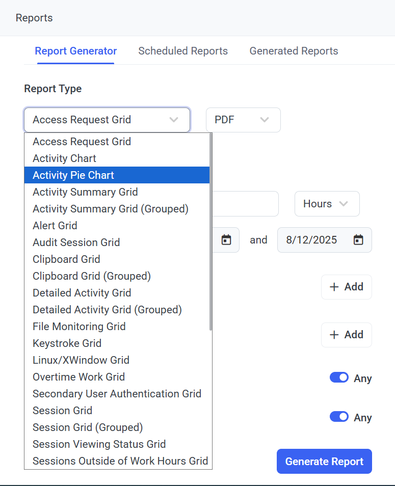 This option allows you to define the time period for which the report will be generated.