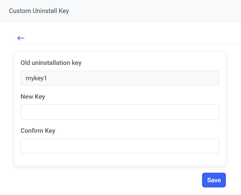 5. Re-enter the new Uninstallation key in the Confirm Key field, and then click Save.