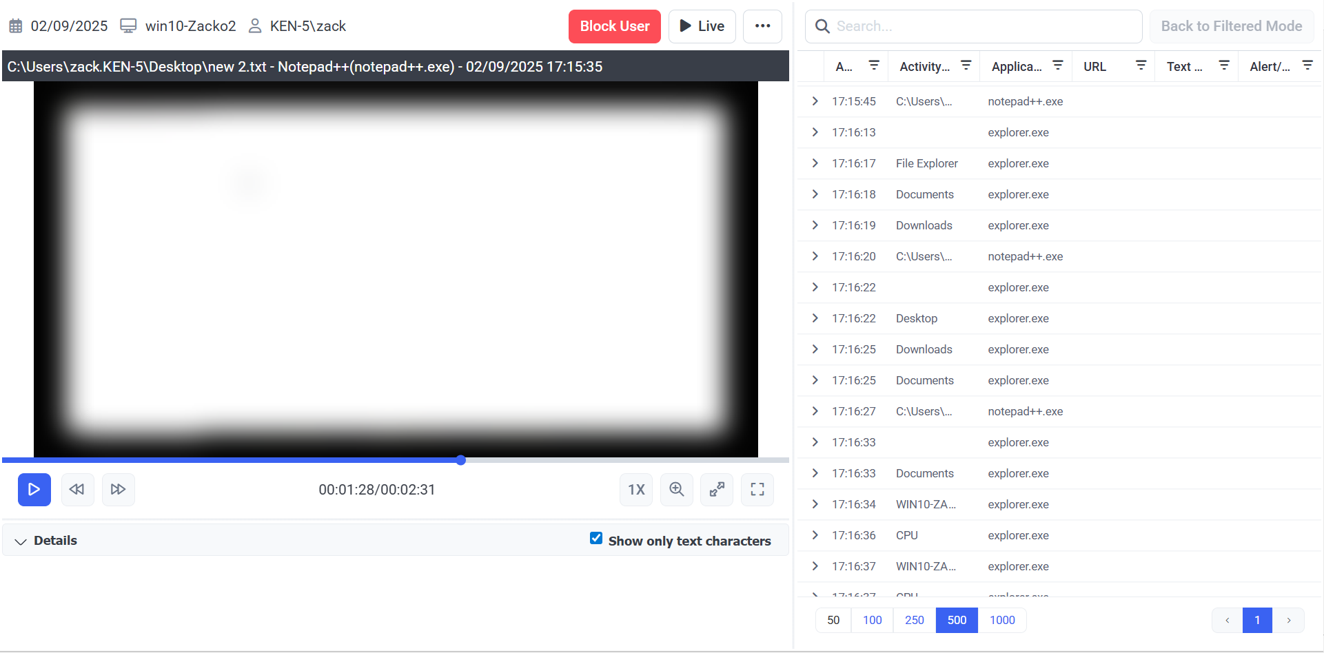 Whenever the Syteca Client identifies clear text data matching the regex value on the screen, the data is masked (i.e. blurred or hidden) immediately.