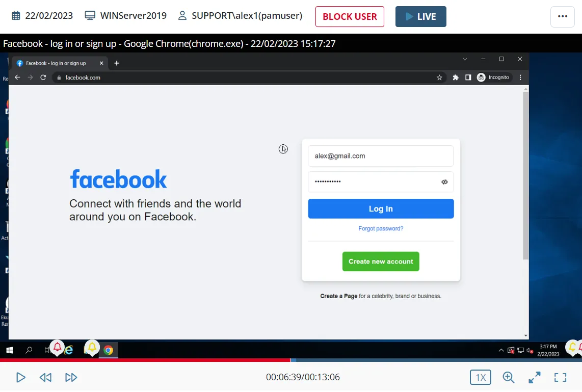 • To block the user, click the