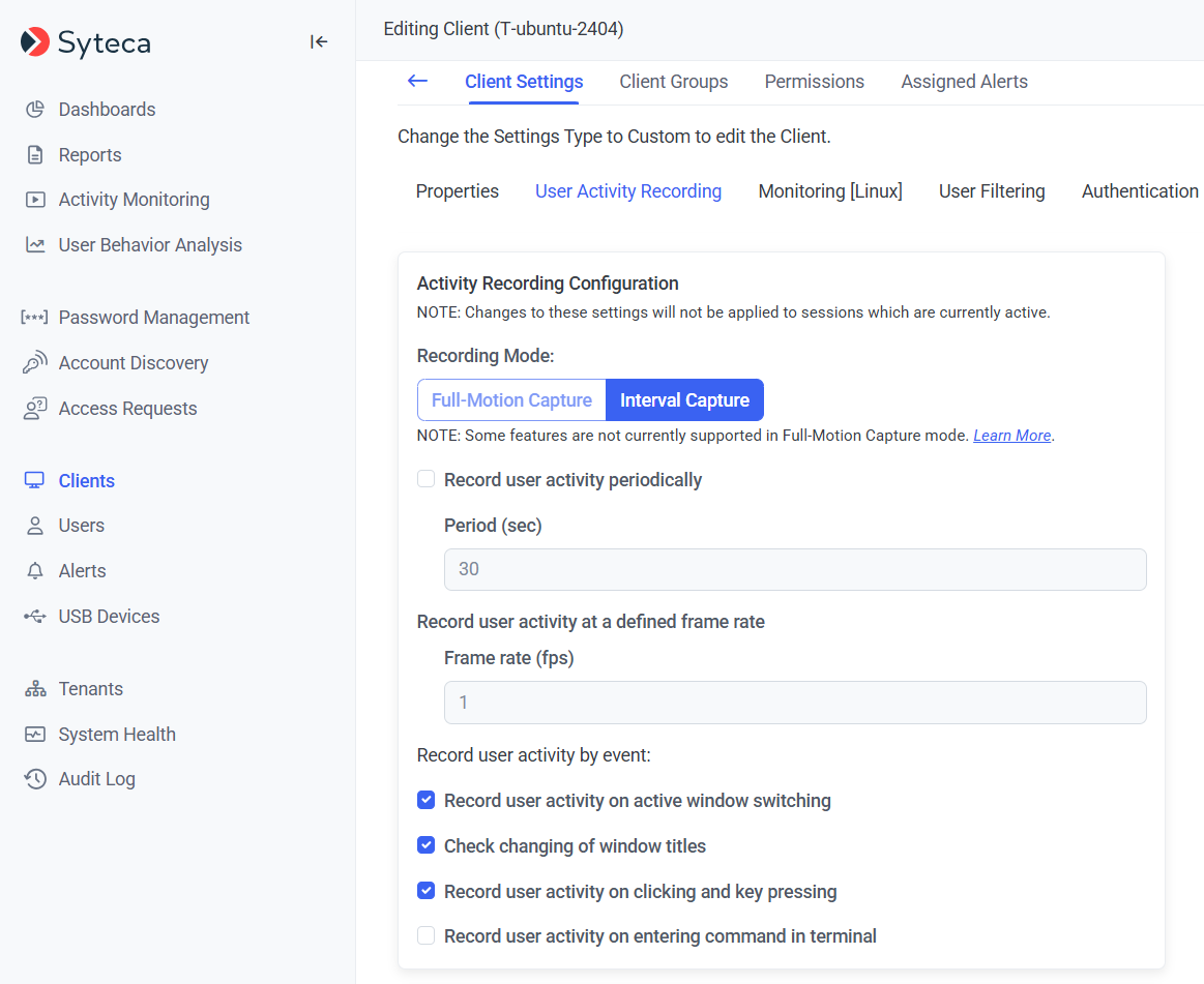 The User Activity Recording Parameters (for Linux Clients)