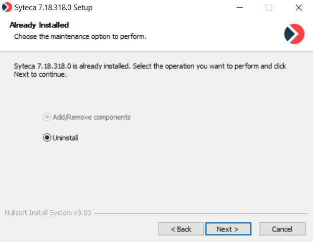 Uninstallation of Syteca Application Server is an irreversible operation, during which the database is removed without any user confirmations.