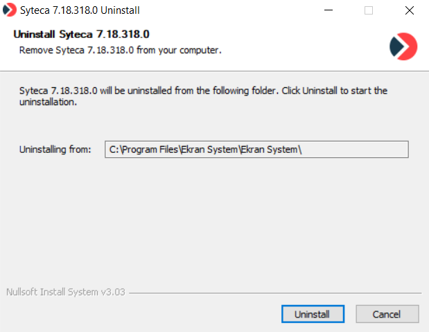 5. On the Uninstall Syteca page, click Uninstall.