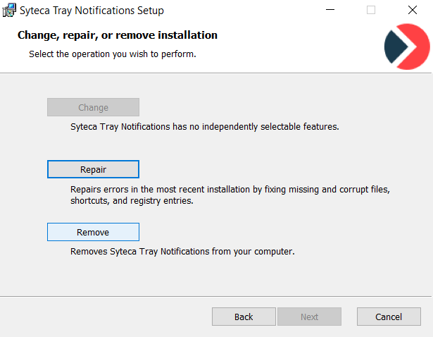 Uninstalling the Syteca Tray Notifications Application